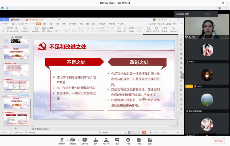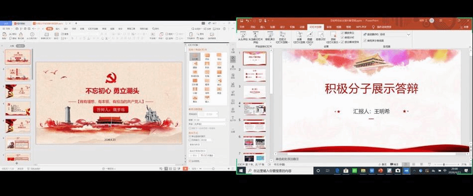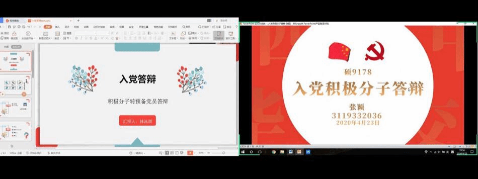 参与本次线上展示的入党积极分子共7人,分别是华昱、廖子千、张颖、王明希、林泳淇、魏梦珠及郭璇。按照陕西省发展党员工作规程,7名入党积极分子经过申请入党、入党积极分子一年以上的确定和培养教育,现进入发展对象的确定和考察阶段。此次答辩根据“全面考察、择优选取”的原则,严格遵循《91传媒
