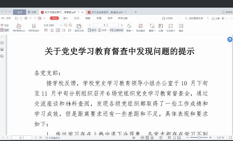接着,大家集体学习了学校下发的《关于党史学习教育督查中发现问题的提示》文件内容。在认真梳理和总结新闻系党支部在党史学习教育方面具体工作及自查中发现的各类问题基础上,与会党员同志提出将按照“学党史、践承诺、见行动”台账及落实情况,全面开展自查和系统总结,会及时查摆存在不足、分析问题原因并进行到位整改。