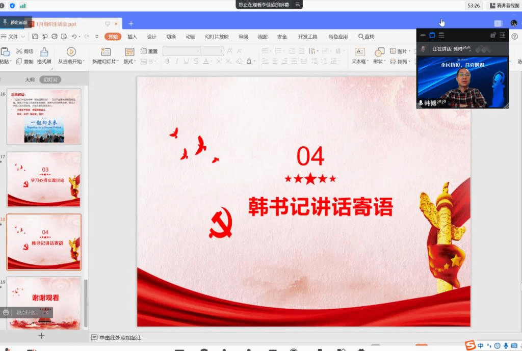 党总支副书记韩博对支部学习情况和学院师生党员主动积极地参与到防疫、抗疫的志愿活动中的行为表示肯定,并向大家介绍了政府、社会、学校多方面举措,希望大家能够心怀感恩,铭记援助,坚定信心,共克时艰。他强调,“广大学生党员要持续发挥为大家服务的精神,同心抗疫,共克时艰。我们始终坚信,在党的领导下,我们一定会守得云开见月明!”