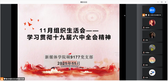 为深入学习贯彻党的十九届六中全会精神,进一步加强支部党员理论武装与思想建设,2021年11月30日,硕9177党支部召开了“牢记初心 勇毅前行 勇当新时代‘赶考者’”专题组织生活会,支部全体党员及积极分子就前期自学情况,围绕个人思想和工作实际,交流学习体会,检视差距不足。