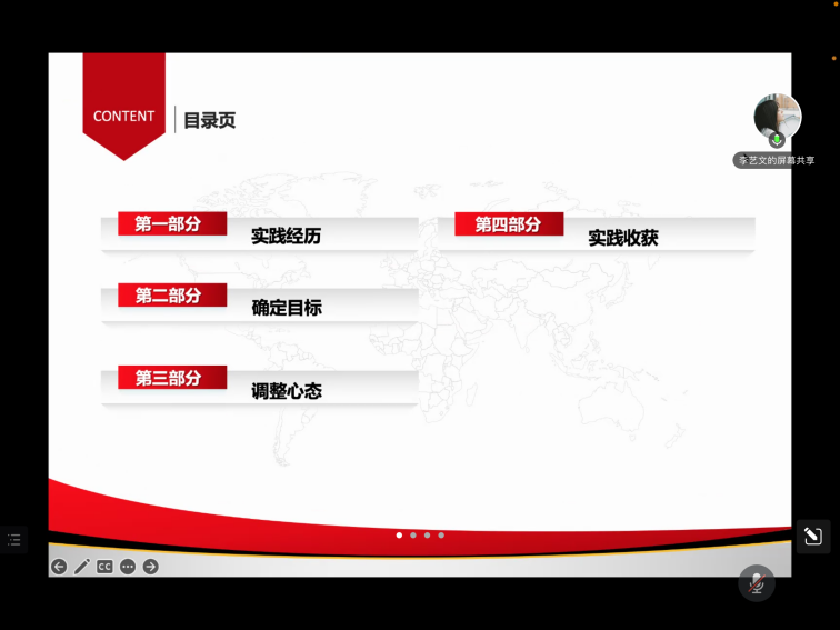 李艺文从实践经历、如何确定目标、如何调整心态以及实践收获这四个方面向大家分享了自身的实践经历。她为同学们提出了三点建议:一是要非功利地面对并认真、平等地对待每一个机会;二是要调节好实习实践和学业之间的关系,仍然要坚持将学业放在第一位,不能顾此失彼;三是要学会积极寻求帮助、借鉴经验和采纳建议。李艺文还指出,虽然大家对于自己未来要走的道路目前多少都会有些迷茫,但是相信大家通过学习和实践都能够了解自己真正的偏好。