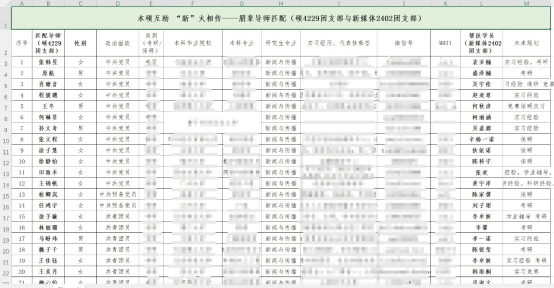 活动开展前,本硕支部对团员的整体情况进行深度交流,并根据硕士生支部成员的实习经历、竞赛荣誉、升学体验等背景建立共享文档,与本科生支部成员的未来规划和需求进行“一对一”匹配,确保“朋辈引领”的帮扶机制真正落实。