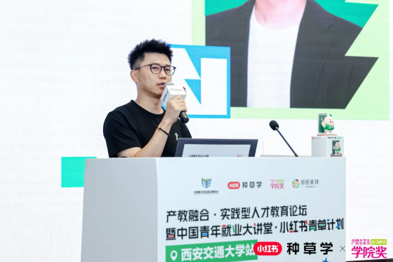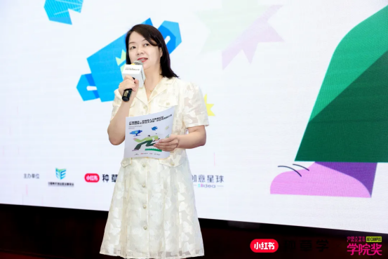 广告人文化集团副总裁、创意星球总经理陈晓庆女士代表主办方学院奖致辞。她表示:学院奖作为连接学界与业界的桥梁,始终致力于为青年学子搭建实践创新的舞台。此次与小红书携手推出青草计划,正是希望通过真实的商业课题与沉浸式的实践场景,让同学们在探索种草经济的过程中,将课堂所学转化为职场所需的实战能力。