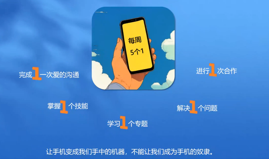 同时,黄蓉老师还为未成年人媒介使用给出具体建议,如明确手机工具属性,运用“一评估二甄别三沉淀四警惕五验证”的方法筛选信息,引导家长帮助孩子树立正确消费观。此外,她通过真实案例展示了新媒体的积极影响,呼吁青少年全面看待新媒体功能,并发起“五个一”的行动号召,鼓励同学们在寒假提升媒介素养,成为数字公民。“让手机变成我们手中的机器,不能让我们成为手机的奴隶”。