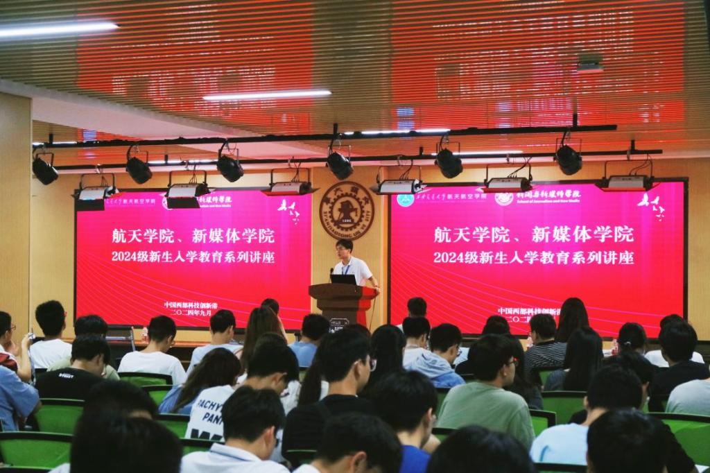 于创新港万户多功能报告厅(2-4195)共同举办“2024级新生入学教育系列讲座”。讲座分为两场,分别由学校心理中心刘可馨、保卫处信息与安全教育办公室常帅主讲。航天学院研究生辅导员李宇辰主持活动,两院300余名新生参加讲座。