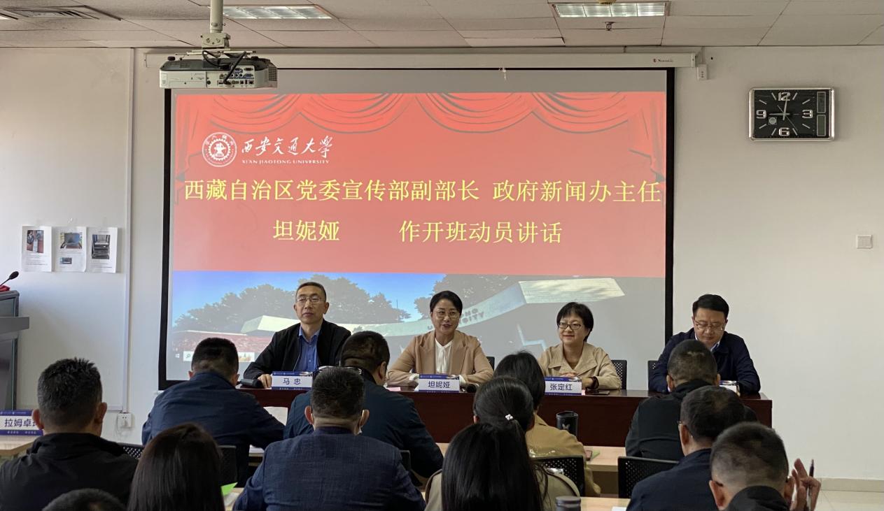 西藏自治区党委宣传部副部长、政府新闻办主任坦妮娅作开班动员讲话,首先她代表西藏自治区党委宣传部对交大给予的大力支持表示衷心的感谢,向各位奋斗在一线的同仁表示热情的问候。她希望学员能静下心来,全力以赴的投入到本次培训的学习当中,以问题为导向,深学悟透,提升思维能力,深化媒体融合,学习落实习近平总书记对宣传思想文化工作作出的重要指示,以适应新时代党的二十大对融媒体建设的要求。