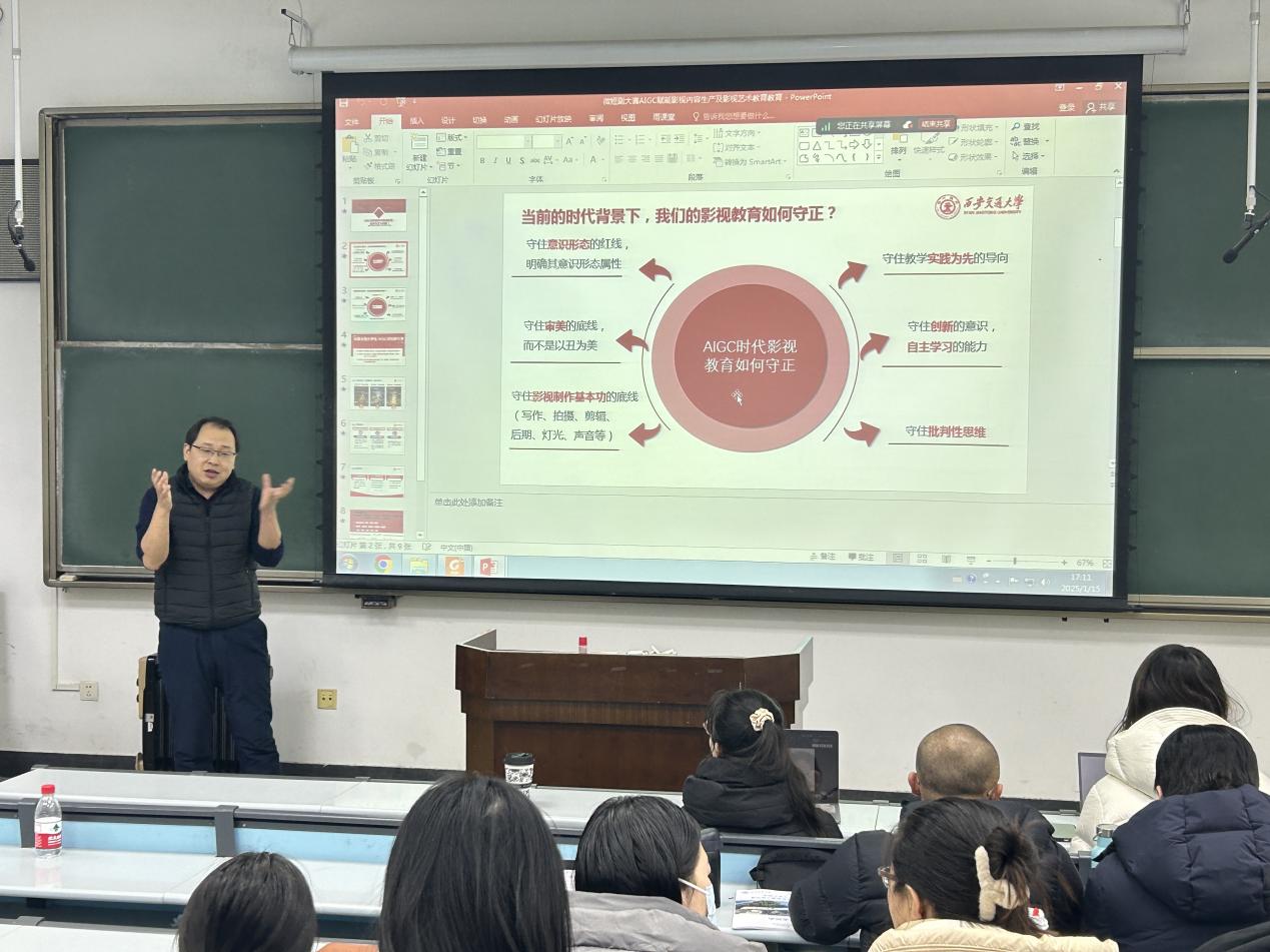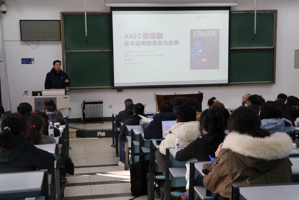 国家广电总局网络视听专家组成员、“繁星指数”专家组组长、中国新闻文化促进会副会长陆先高老师分享了AIGC微短剧技术运用的理念与边界。他从政策、技术等多层面出发,为教师们提供了理论指导,帮助他们更好地理解和应用AI技术。
